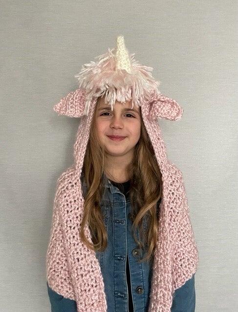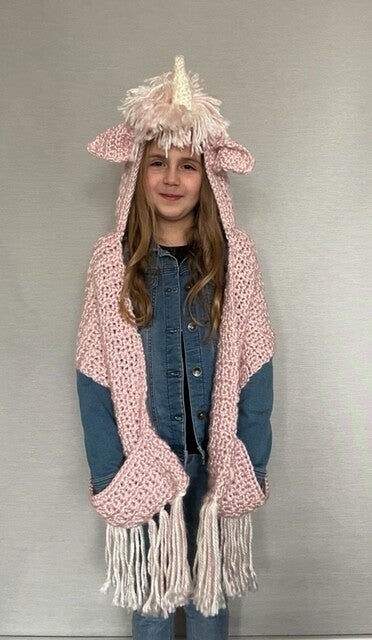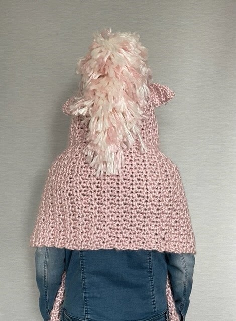 Mooie zware roze unicorn sjaal-muts met zakken.